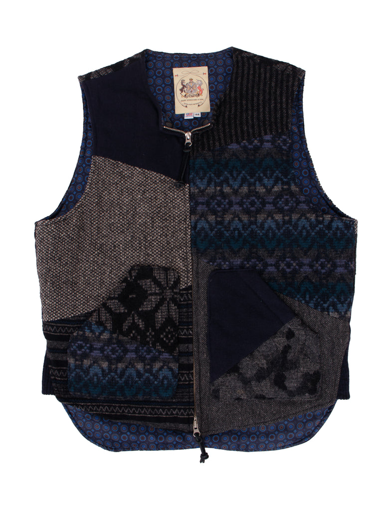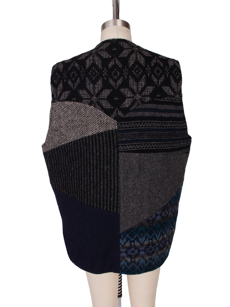 Monitaly Black & Blue Wool Patchwork Quilted Vest