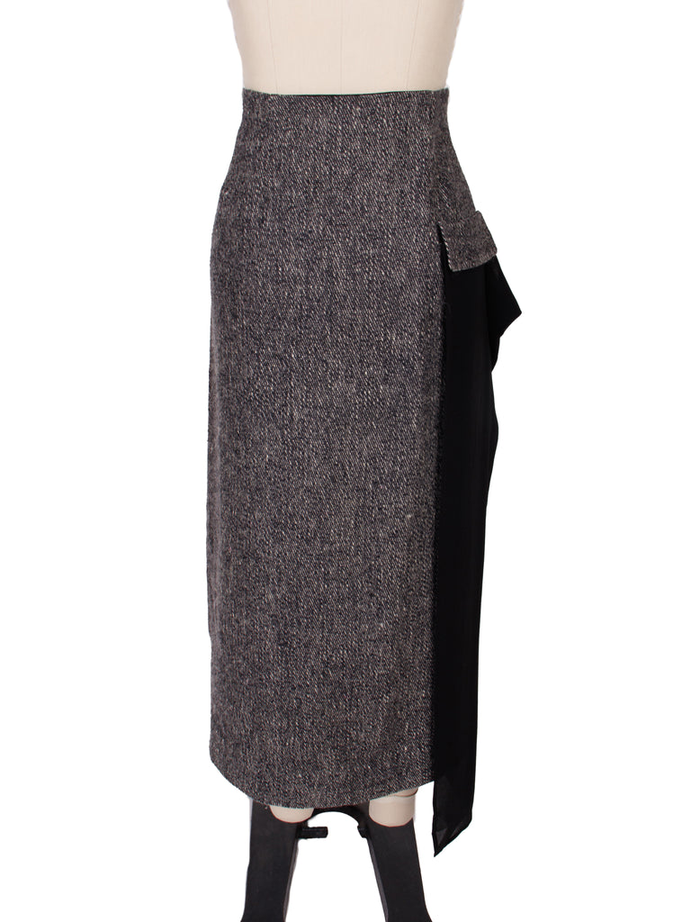 Yohji Yamamoto + Noir Wool & Convertible Silk Overlay Skirt