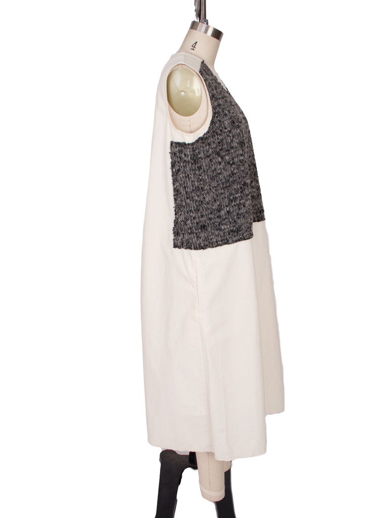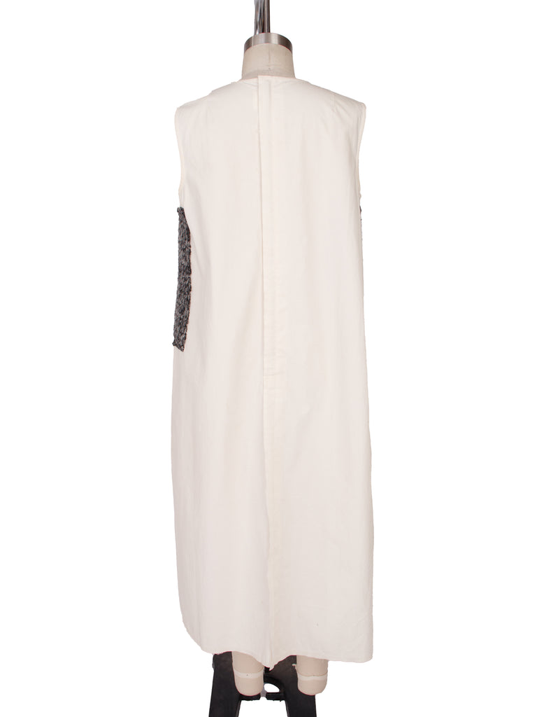 Comme des Garçons cotton sleeveless midi dress in off white and speckled grey.