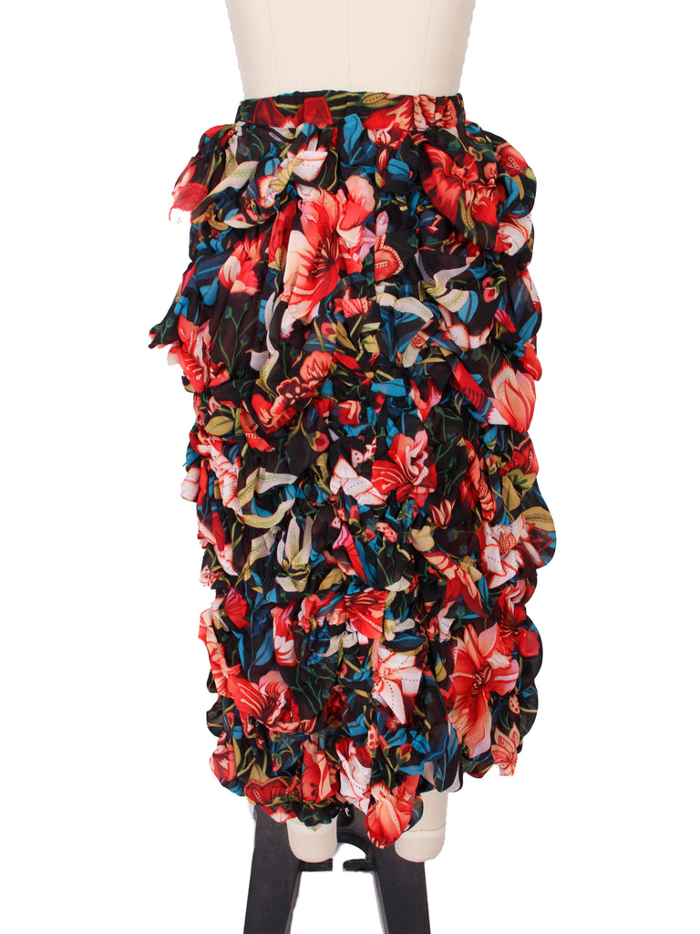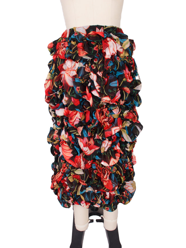 2023 Comme des Garcons Floral Shirred Drawstring Skirt*
