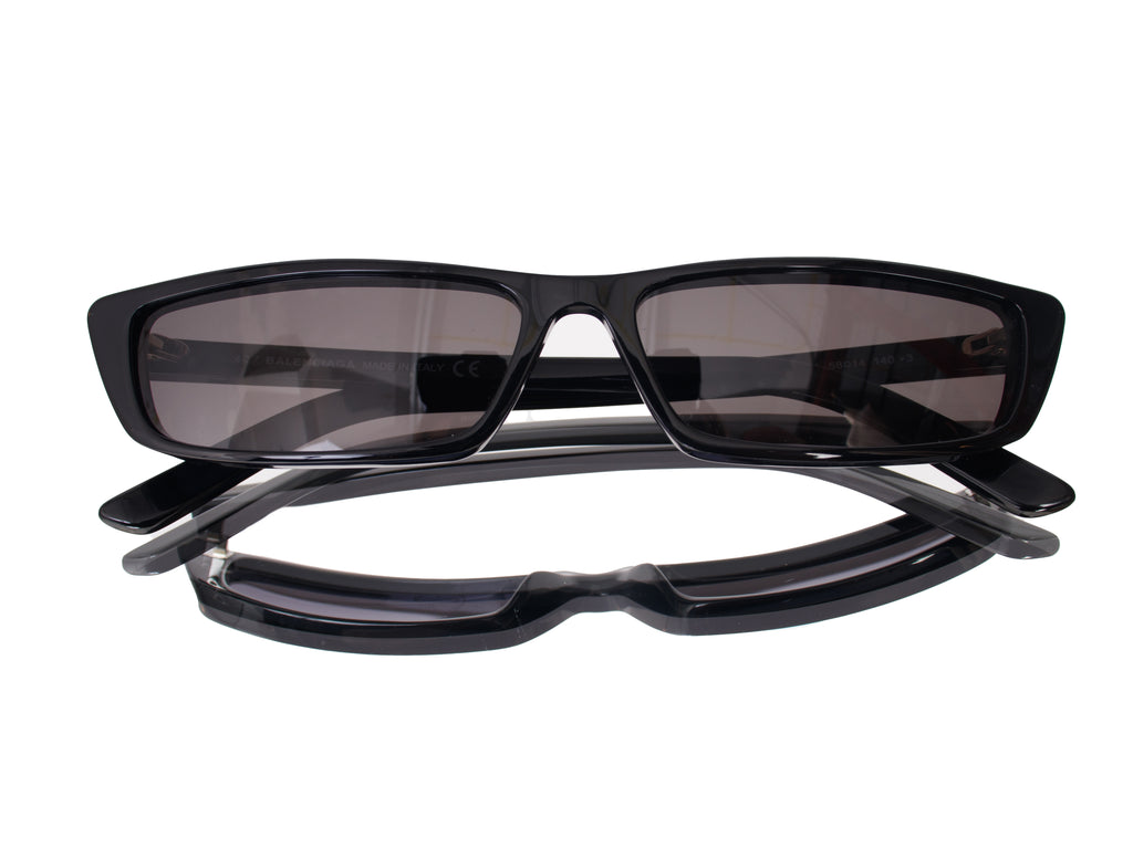 Balenciaga slim rectangular sunglasses in black.