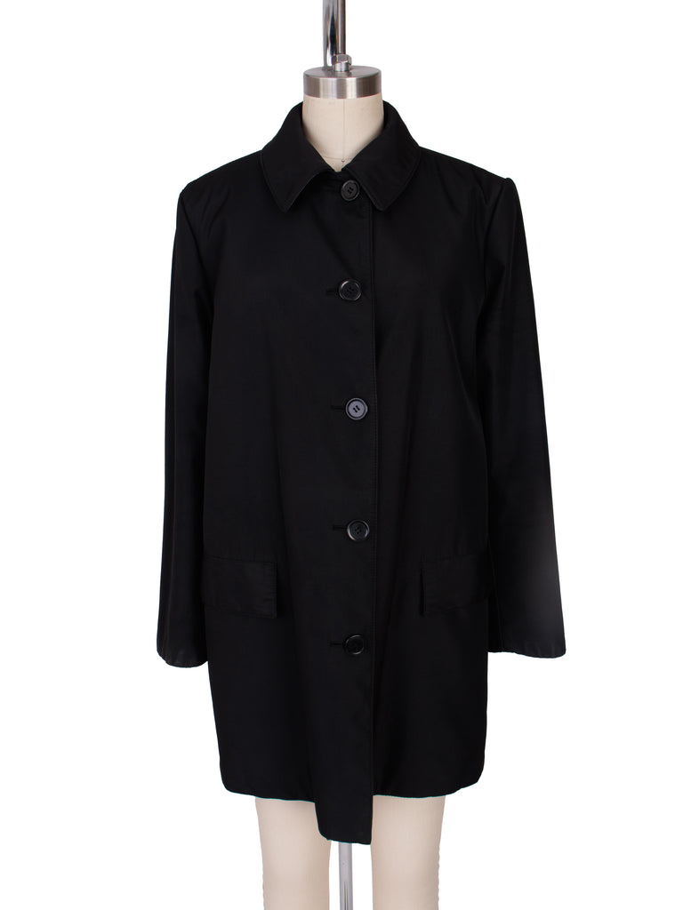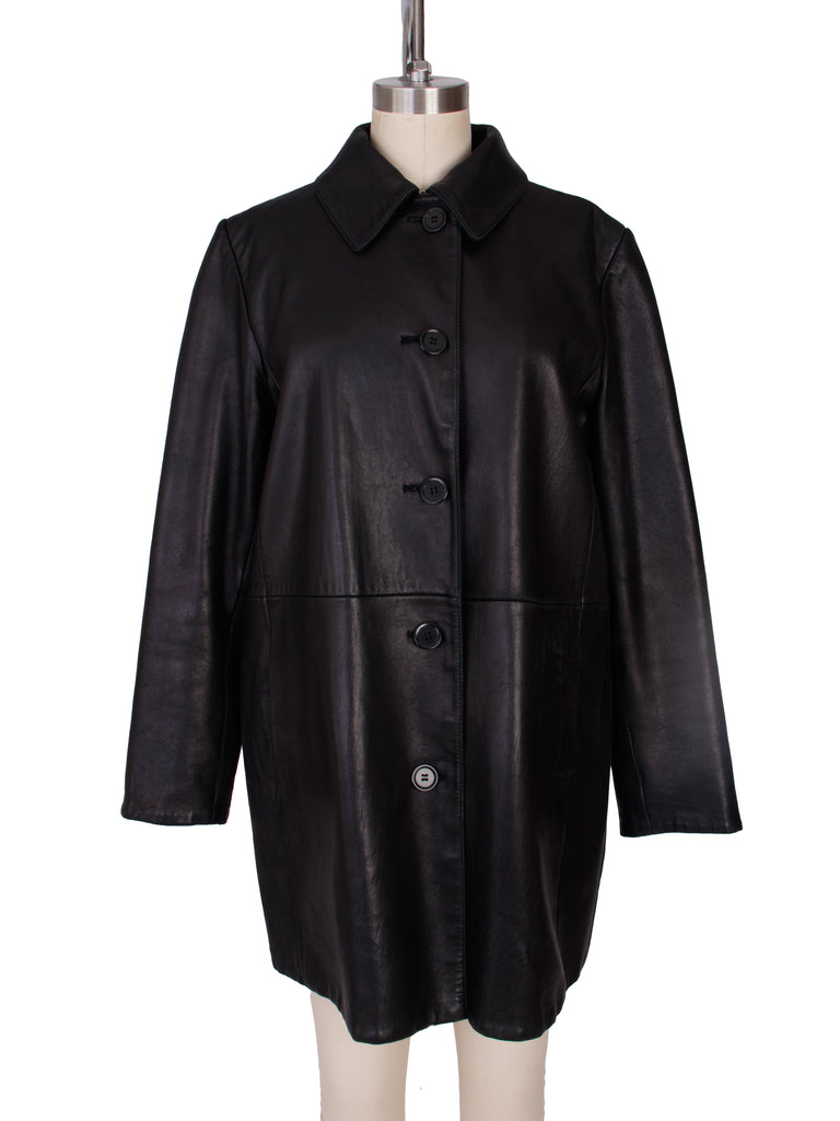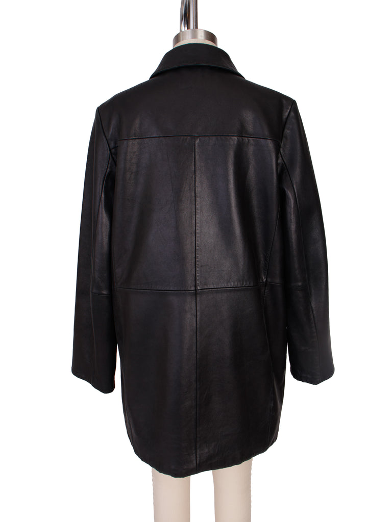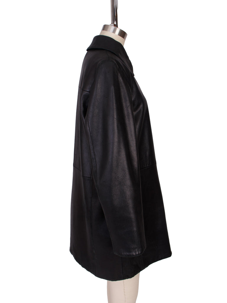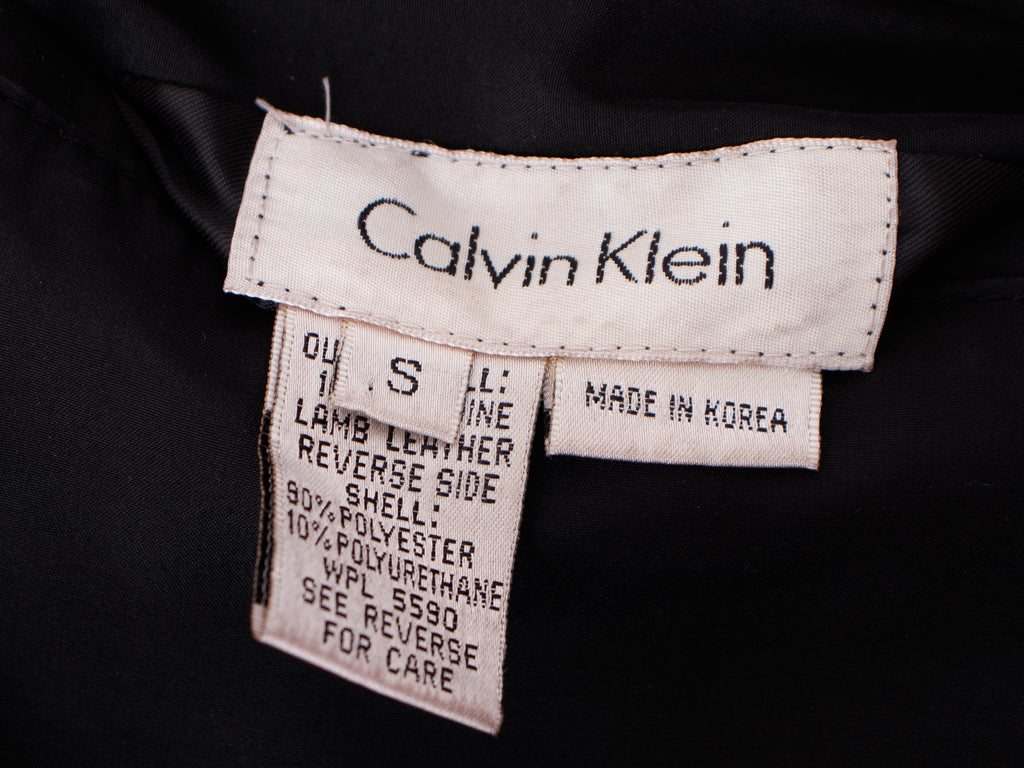Calvin Klein for Neiman Marcus lamb leather & nylon reversible coat in black.