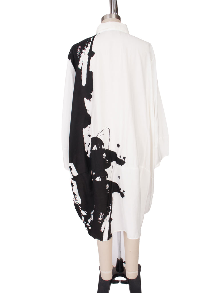 Calvin Tran long sleeve shirt in white and black.