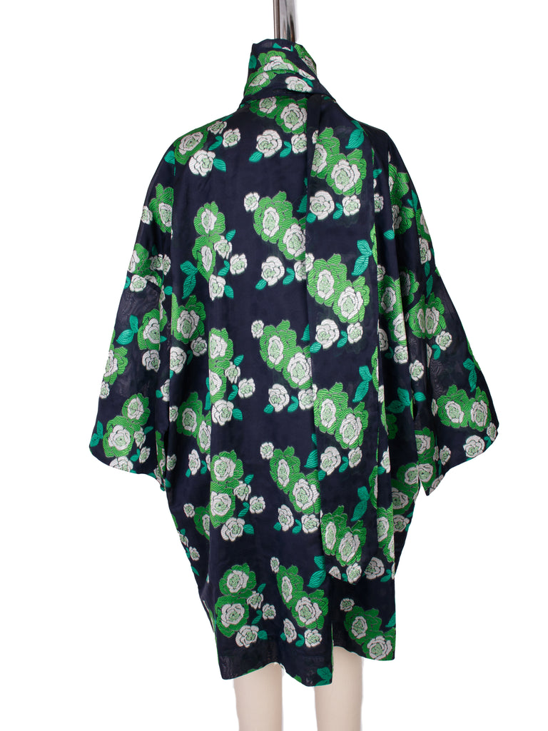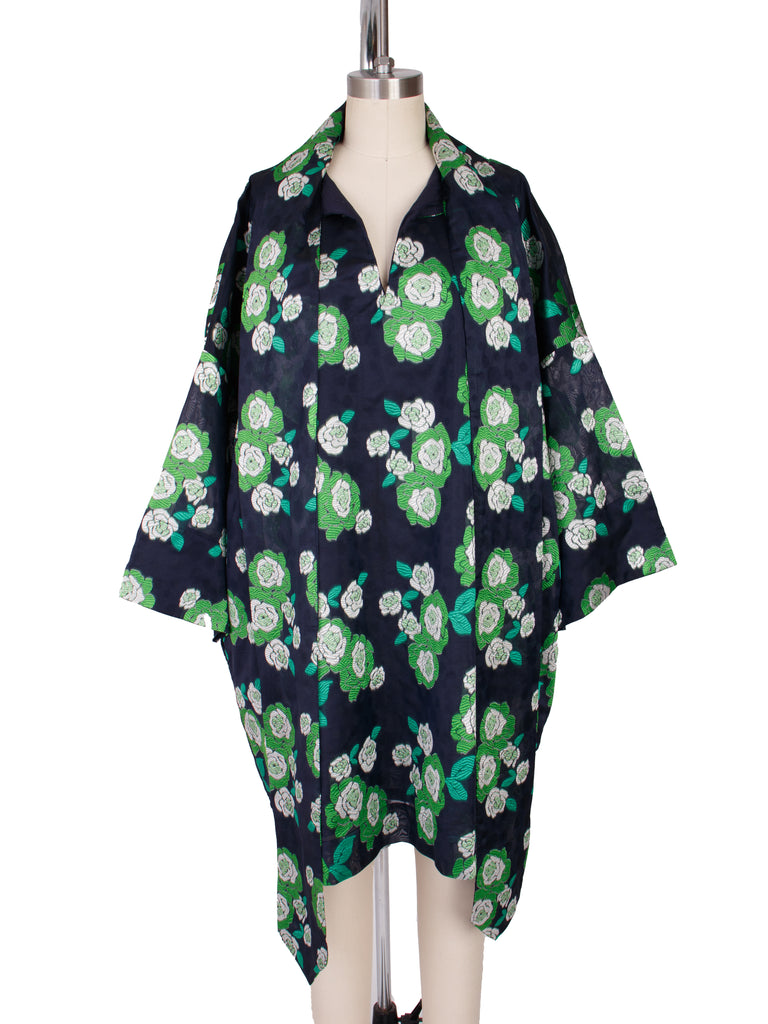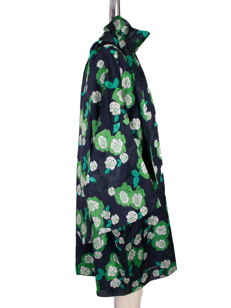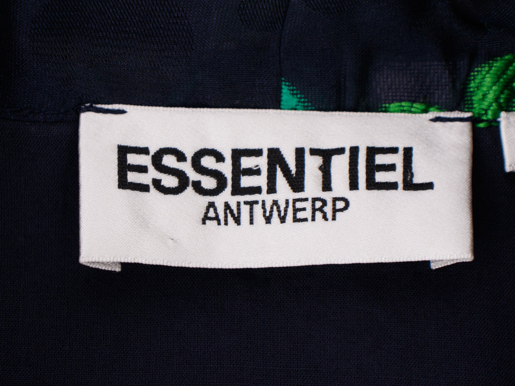Essentiel Antwerp 70's inspired floral jacquard mini dress in black and green.