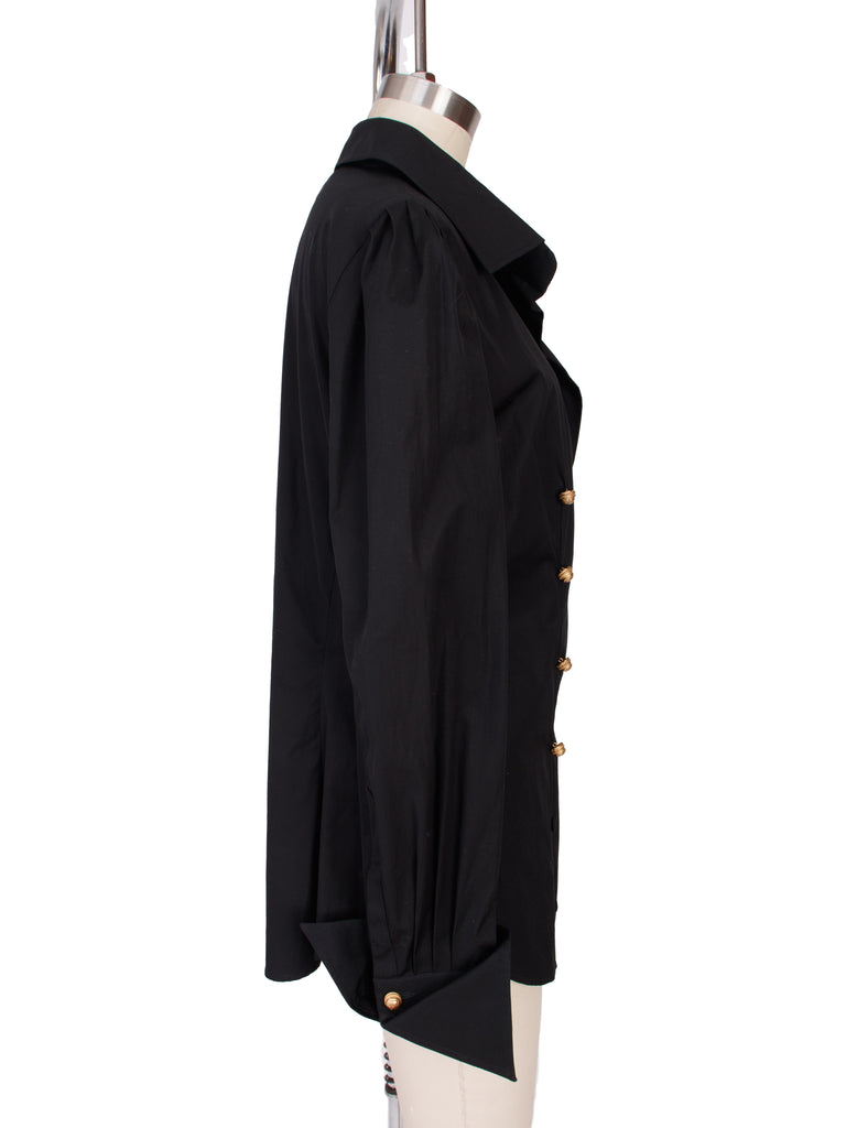 Gianfranco Ferre poplin cotton double-breasted shirt in black.