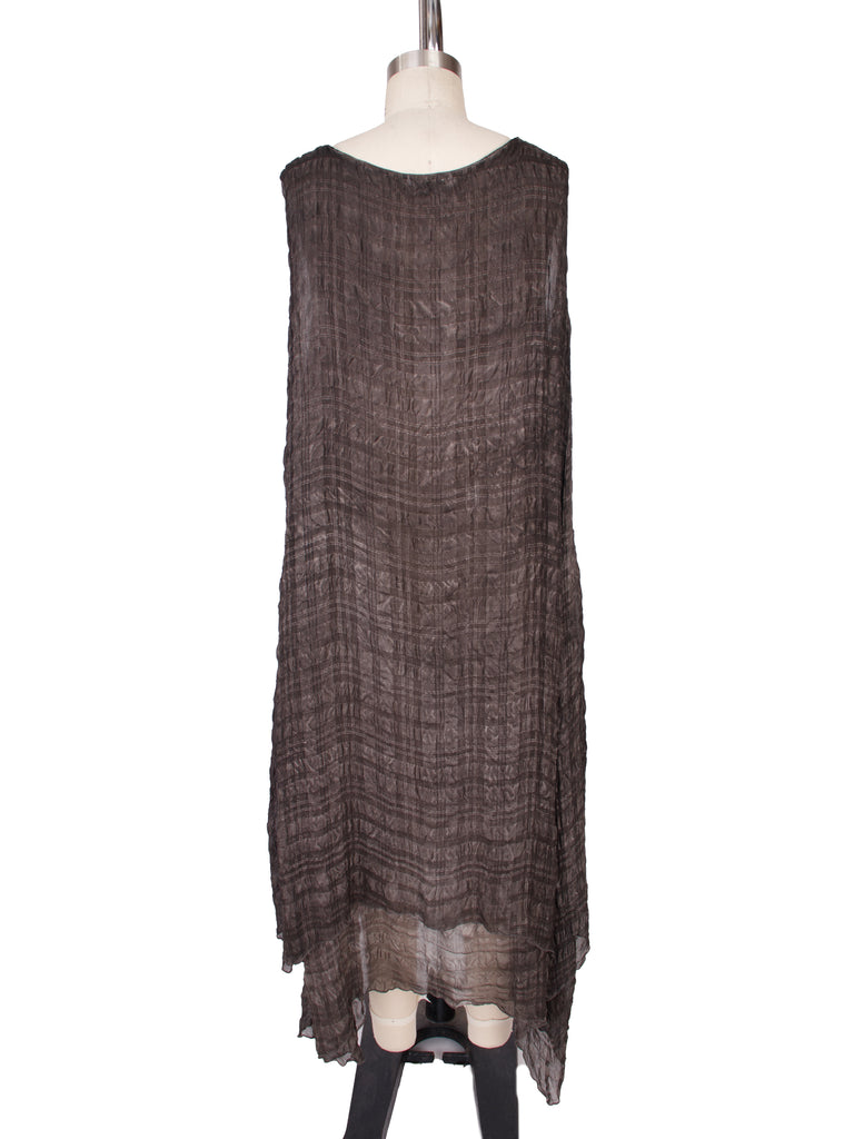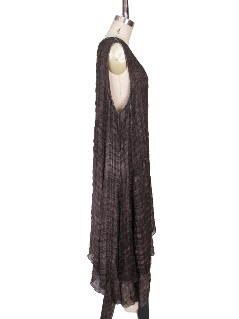 Grizas silk plissé sleeveless midi dress in charcoal.