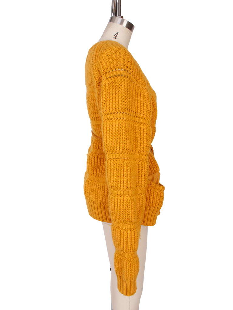 Henrik Vibskov wool medium weight knit cardigan in marigold.