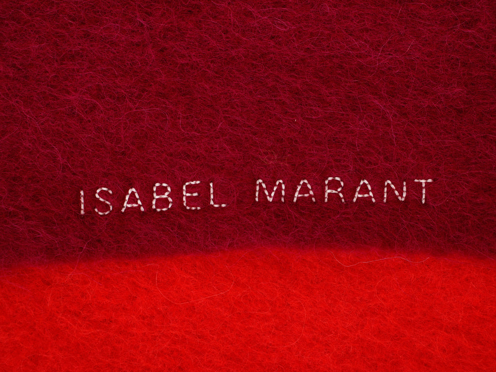Isabel Marant alpaca wool ombré scarf in red and maroon.