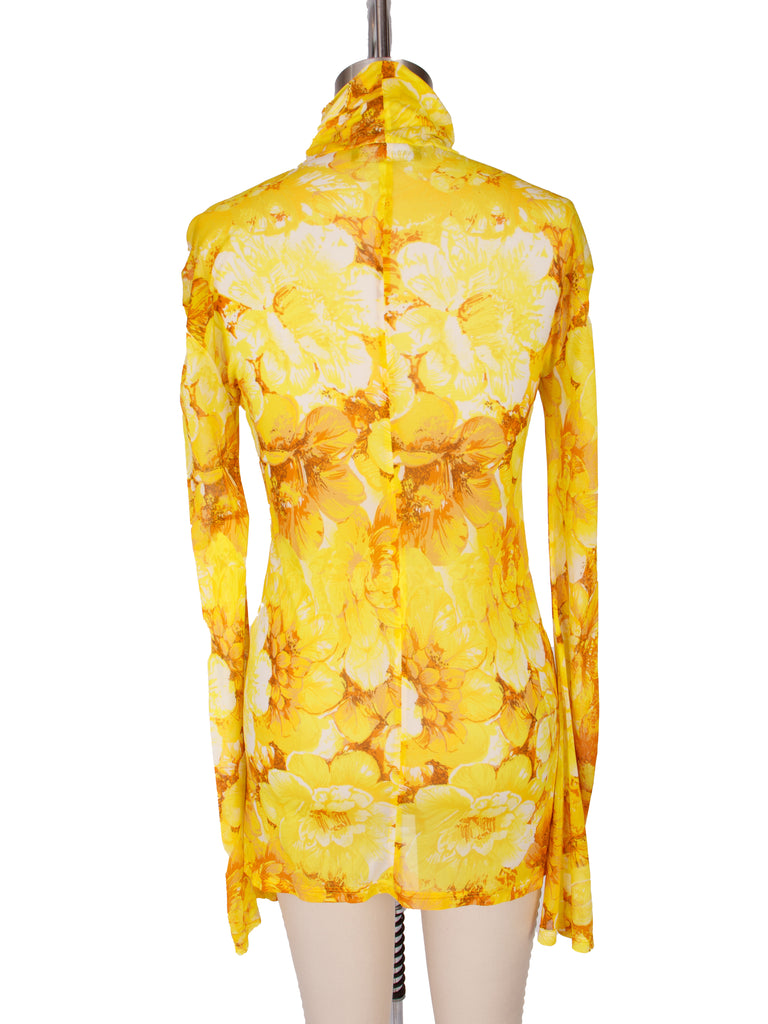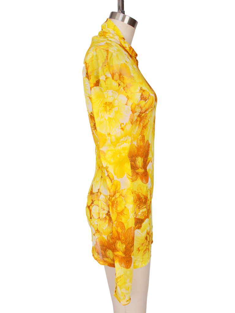 Kwaidan Editions mesh long sleeve mini dress in yellow.