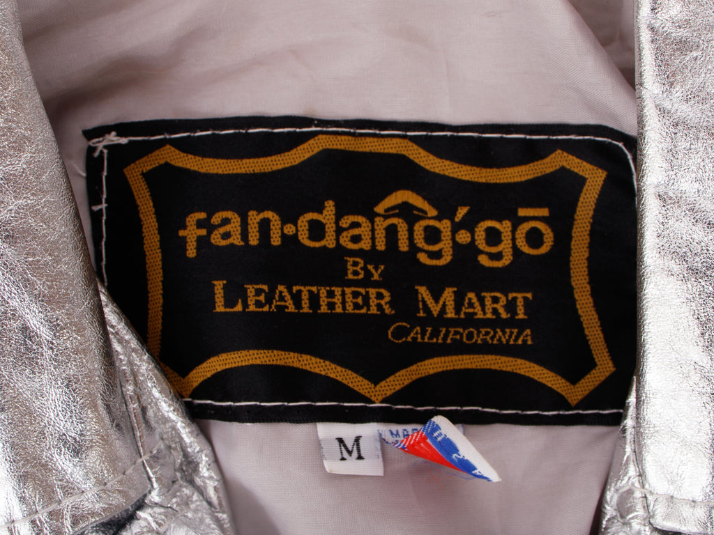 Fan·dang'·gō by Leather Mart California leather biker jacket in metallic silver.
