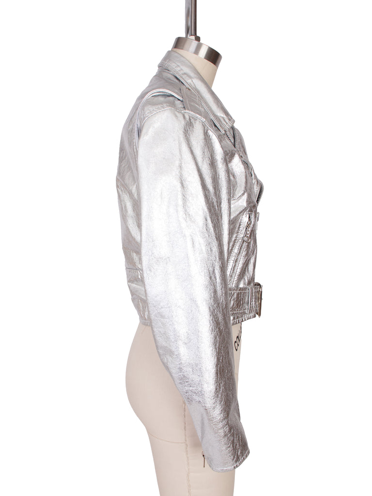 1980s Metallic Silver Biker Jacket