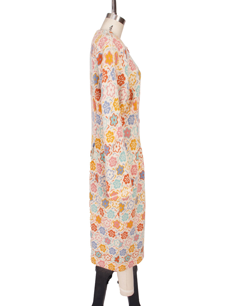 Missoni cashmere intarsia sweater dress in creme and pastel multicolor.
