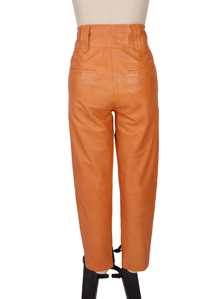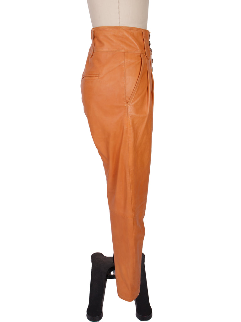 Sézane lamb leather pleated pants in tan.