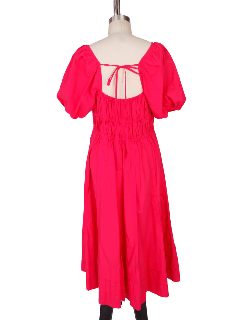 Ulla Johnson poplin cotton midi dress in pink.