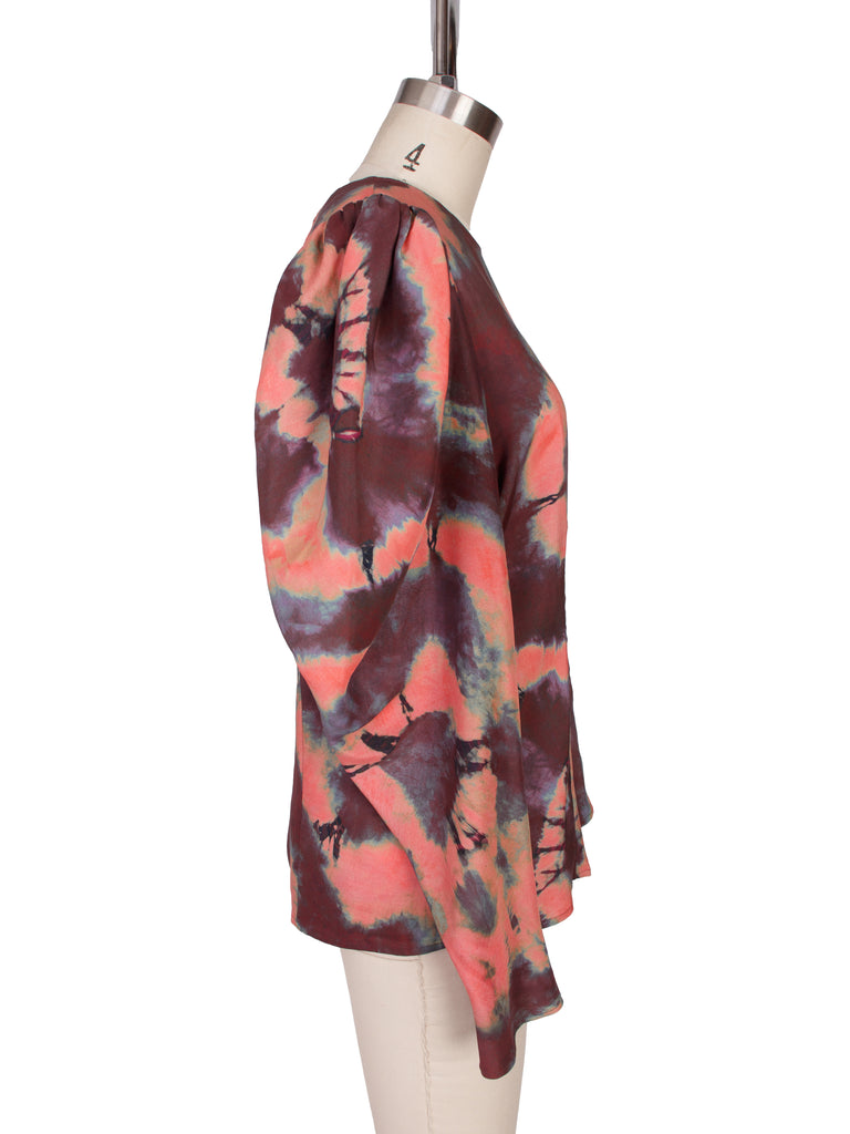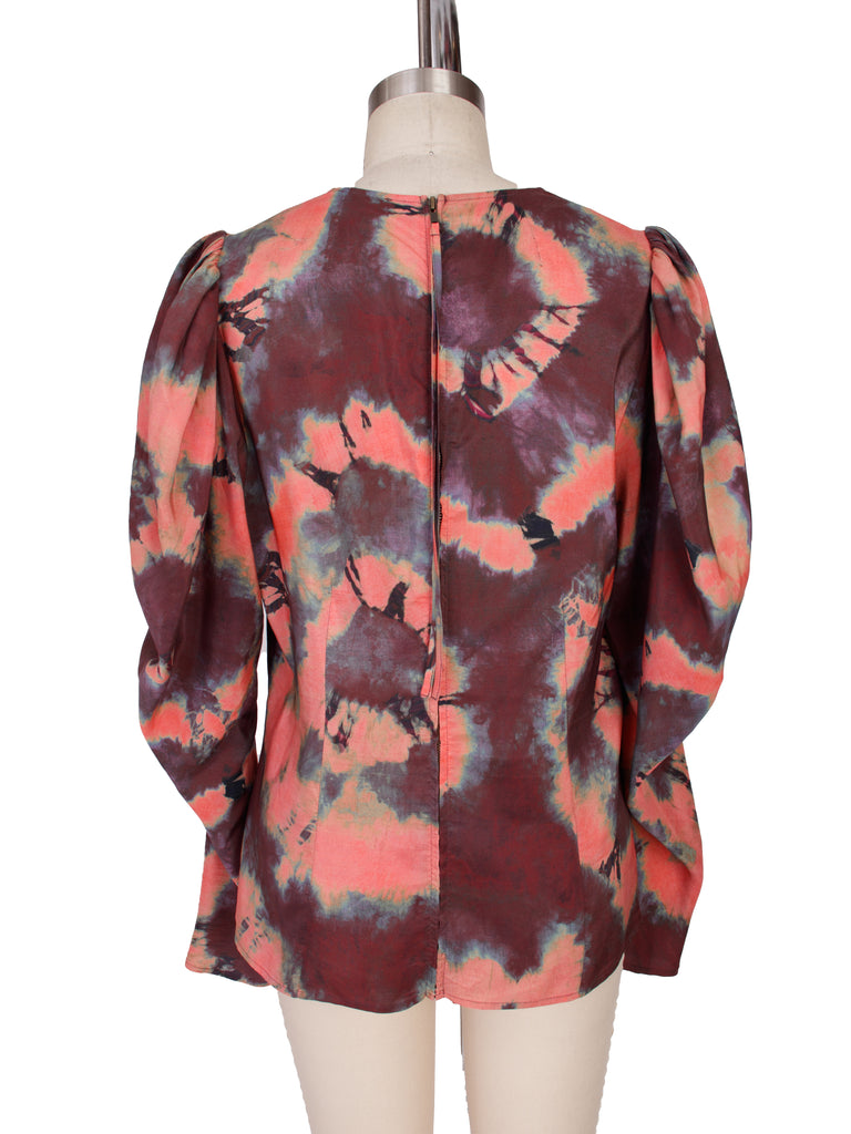 Ulla Johnson silk long sleeve blouse in pink and multicolor.